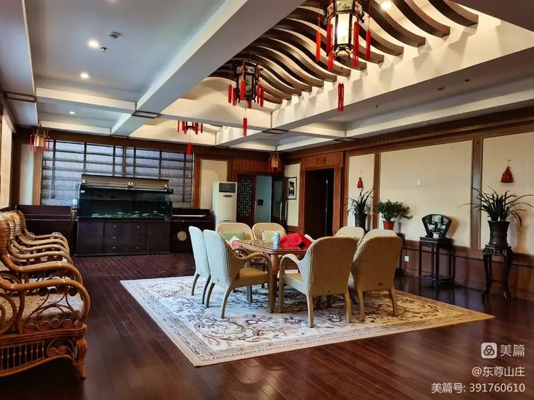 庭院建筑面積達2299平方米,二十世紀三十年代曾為民國將領韓復榘居所,五十年代命名為中天門賓館,后更名為中溪賓館,1996年改名為東尊山莊。