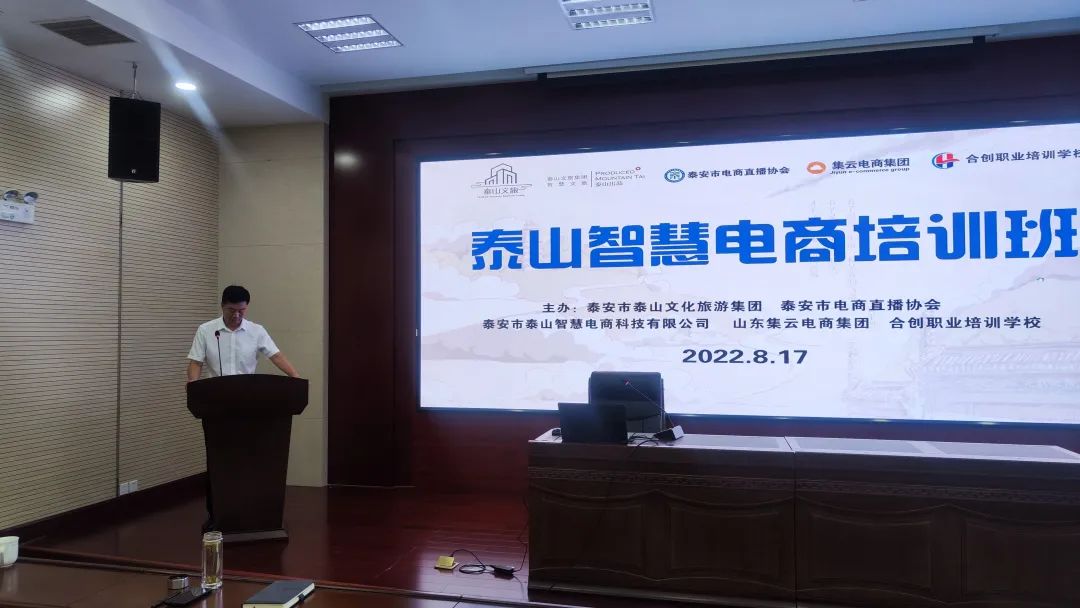泰山文旅集團(tuán)黨委委員、籌備組成員王厚哲做了開(kāi)班致辭,此次培訓(xùn)班特意邀請(qǐng)了合創(chuàng)職業(yè)培訓(xùn)學(xué)校的5位專業(yè)電商和直播講師,課程在直播、短視頻等方面都有涉及,希望大家認(rèn)真學(xué)習(xí),做好新媒體工作。近年來(lái),在市委、市政府堅(jiān)強(qiáng)領(lǐng)導(dǎo)下,我市按照“產(chǎn)業(yè)為基、電商為市、人才為盾、品牌為魂”的發(fā)展思路,不斷夯實(shí)電商基礎(chǔ),提升服務(wù)能力,電商產(chǎn)業(yè)取得了較快發(fā)展,產(chǎn)業(yè)規(guī)模和效益取得了明顯成效。在此電商大環(huán)境下,泰安市泰山智慧文旅集團(tuán)與泰安市電商直播協(xié)會(huì)合作共創(chuàng),成立泰安市泰山智慧電商科技有限公司,將共同打造泰安高品質(zhì)直播電商平臺(tái),開(kāi)展直播帶貨、產(chǎn)品供應(yīng)鏈、直播培訓(xùn)等相關(guān)業(yè)務(wù)。進(jìn)一步擴(kuò)大“泰山出品”品牌影響力,推動(dòng)我市電子商務(wù)高質(zhì)量發(fā)展。