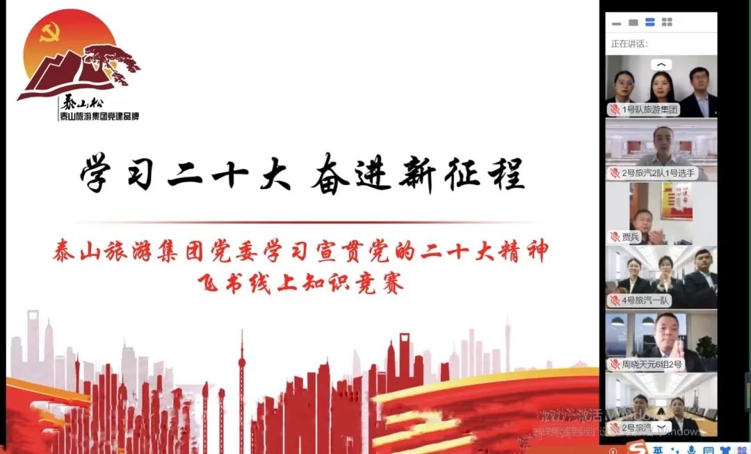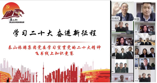 學習貫徹黨的二十大精神是泰山旅游集團當前的首要政治任務和頭等大事,集團黨委緊緊圍繞泰山文旅集團關于學習宣傳貫徹黨的二十大“快、實、深”的要求,迅速掀起學習熱潮、營造濃厚氛圍。鑒于疫情影響,11月3日下午在飛書線上舉辦了“學習二十大 奮進新征程”知識競賽,集團及各子公司6支代表隊18名選手進行了多輪精彩激烈的答題,拉開了泰山旅游集團學習宣傳貫徹黨的二十大精神系列活動的序幕。
