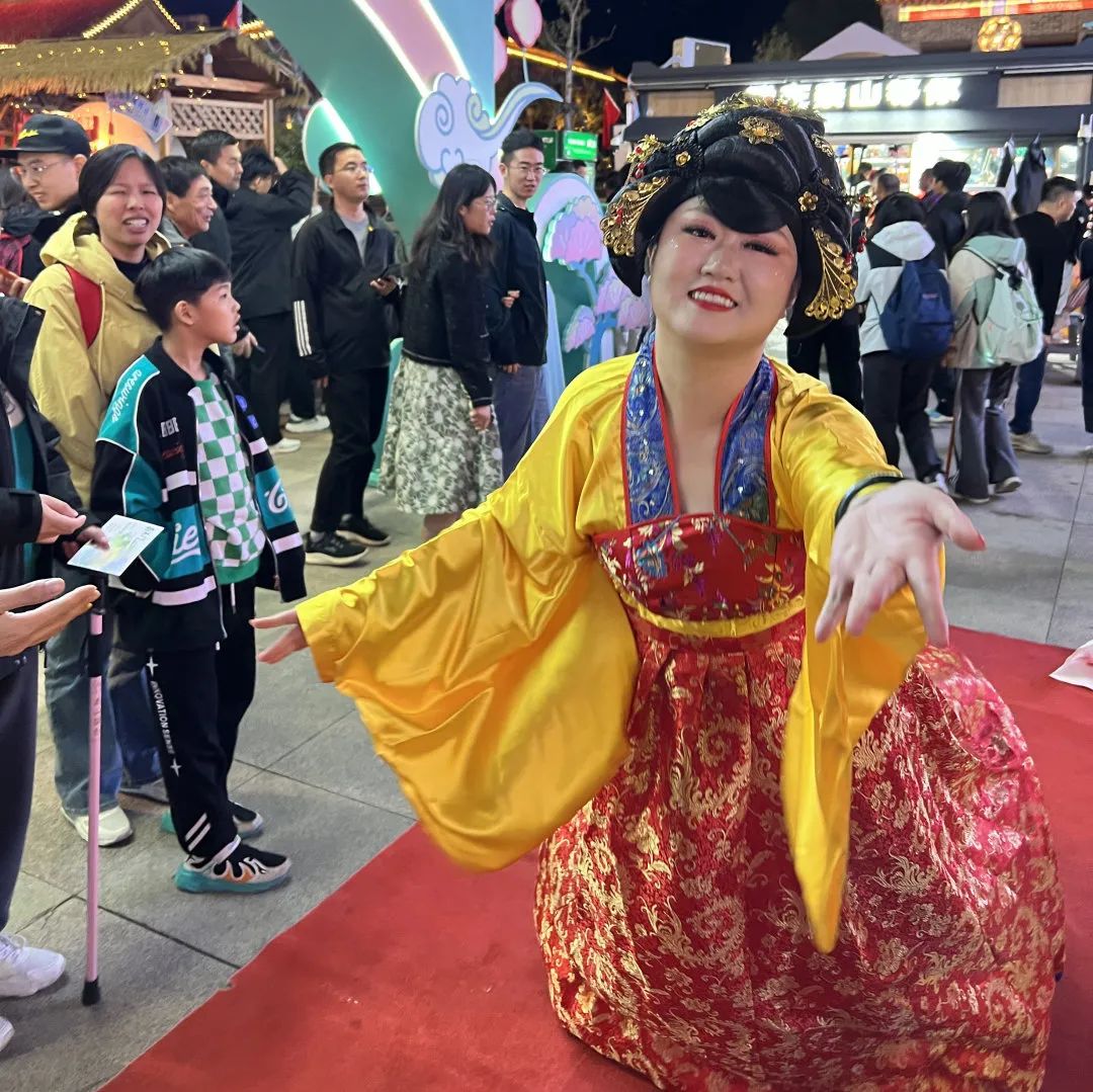 10月1日,泰山文旅集團(tuán)紅門里街區(qū)開展“不倒翁小姐姐”漢服互動(dòng)活動(dòng),本次活動(dòng)持續(xù)到10月4日,每晚19:00-20:30分準(zhǔn)時(shí)與游客見面。燈籠高掛、紙傘輕搖,活動(dòng)當(dāng)晚的紅門里街區(qū)熱鬧非凡。“不倒翁小姐姐”身著精致的傳統(tǒng)漢服,駐足于古色古香的紅門里街區(qū)之中,與游客進(jìn)行互動(dòng)并發(fā)放飲品兌換卷以及泰山明信片。其獨(dú)特的衣著妝造及表演形式迅速贏得了現(xiàn)場觀眾的喜愛,為游客帶來了穿越時(shí)空的奇妙感受。
