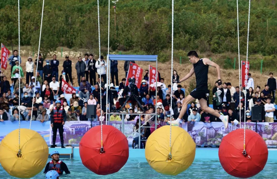 10月5日上午9點(diǎn)整,由泰山文旅集團(tuán)與山東省廣播電視臺(tái)綜藝頻道聯(lián)合舉辦的《快樂向前沖》在泰山桃花源景區(qū)正式開賽。當(dāng)日,來自全國各地的1000余名參賽選手、8000余名觀眾齊聚一堂,現(xiàn)場(chǎng)感受運(yùn)動(dòng)的樂趣與挑戰(zhàn)。活動(dòng)開始,往屆“快沖”闖關(guān)老將們進(jìn)行了精彩的闖關(guān)表演,贏得了在場(chǎng)觀眾們的陣陣歡呼聲與掌聲。選手們紛紛上場(chǎng),在闖關(guān)途中“各顯神通”,現(xiàn)場(chǎng)氣氛歡快熱烈。