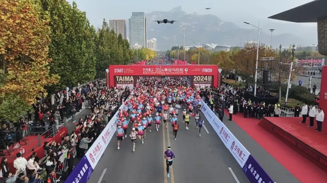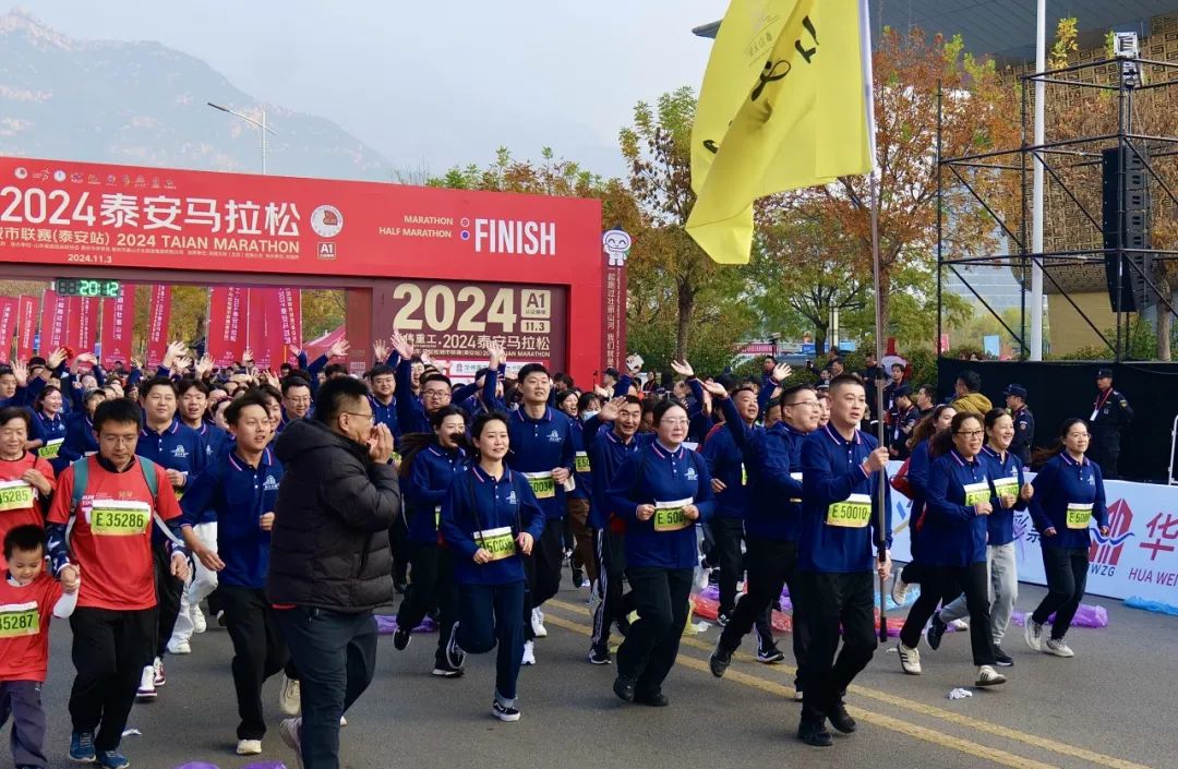 11月3日上午,2024泰安馬拉松暨好運(yùn)山東·馬拉松城市聯(lián)賽(泰安站)在泰山國(guó)際會(huì)展中心鳴槍起跑,22000余名跑者相約泰安,一起跑過壯麗山河。泰山文旅集團(tuán)作為唯一頂級(jí)贊助商,集團(tuán)機(jī)關(guān)與各子公司組成100人的文旅方陣,助力賽事成功舉辦。隨著發(fā)令聲響起,整個(gè)城市仿佛被瞬間點(diǎn)燃。選手們蓄勢(shì)出發(fā),精神抖擻,斗志昂揚(yáng)。賽道兩旁,觀眾揮舞著彩旗,為跑者們加油助威。