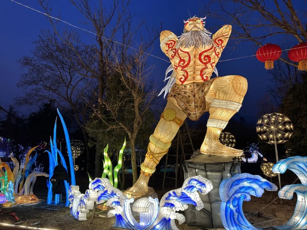 燈會現場既有以山海經神話為靈感的傳統燈組,也有融入現代設計元素的創意燈飾。燈光璀璨,造型各異,展現出泰山文化的深厚底蘊與現代藝術的創新魅力。