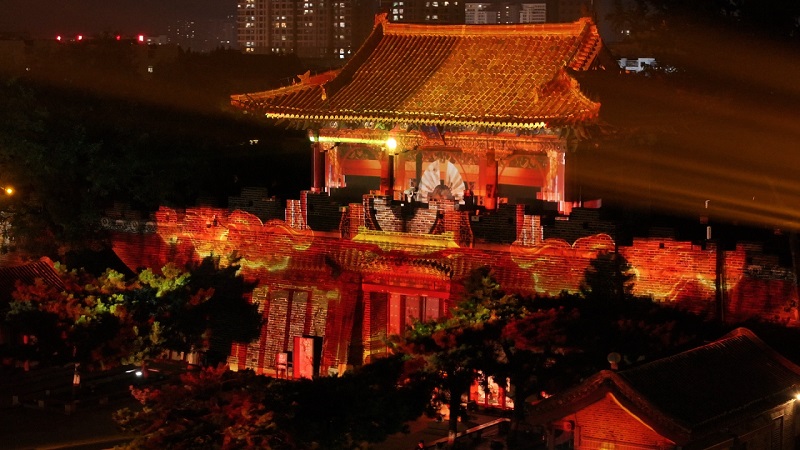 每日14時30分,活動特邀來自肥城夢幻桃花源的專業演職團隊帶來專場文藝演出。當夜幕降臨,18時30至21時(每半小時一場),岱廟北城墻將變身“巨型光影幕布”,上演燈光秀表演。光影流轉間,千年歷史與現代科技碰撞融合,讓游客在光影變幻中直觀感受泰山文化的厚重底蘊與魅力。